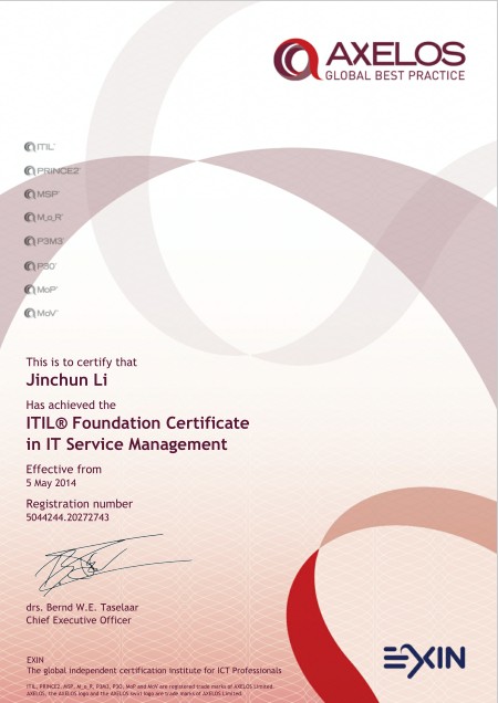 六:ITIL 新版證書(考試通過(guò)后獲得,本課程可直接參加ITIL考試)