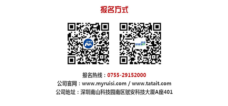 咨詢郵箱:tata@tatait.com 咨詢電話:0755-29152000 新浪微博:@塔塔IT 微信:添加公眾賬號“塔塔IT”加關注!塔塔IT為邁瑞思旗下子品牌,專注高端IT培訓。