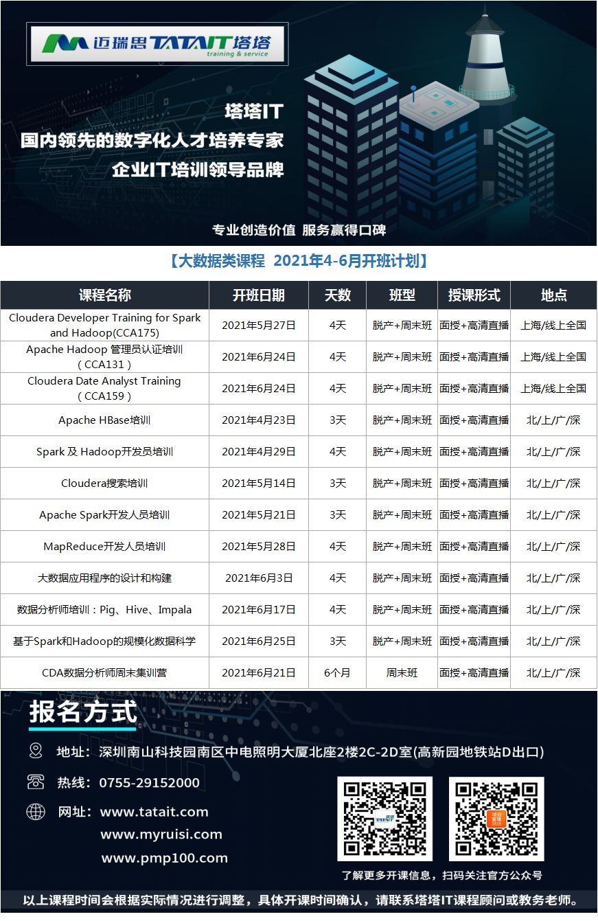 咨詢郵箱:tata@tatait.com 咨詢電話:0755-29152000 新浪微博:@塔塔IT 微信:添加公眾賬號“塔塔IT”加關(guān)注!塔塔IT為邁瑞思旗下子品牌,專注高端IT培訓(xùn)。