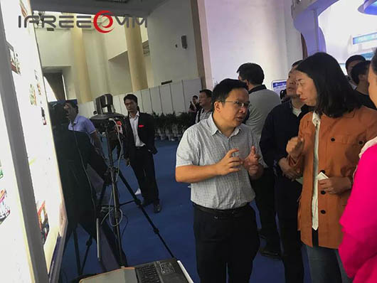 ▲為參觀人員介紹捷視飛通智慧教育